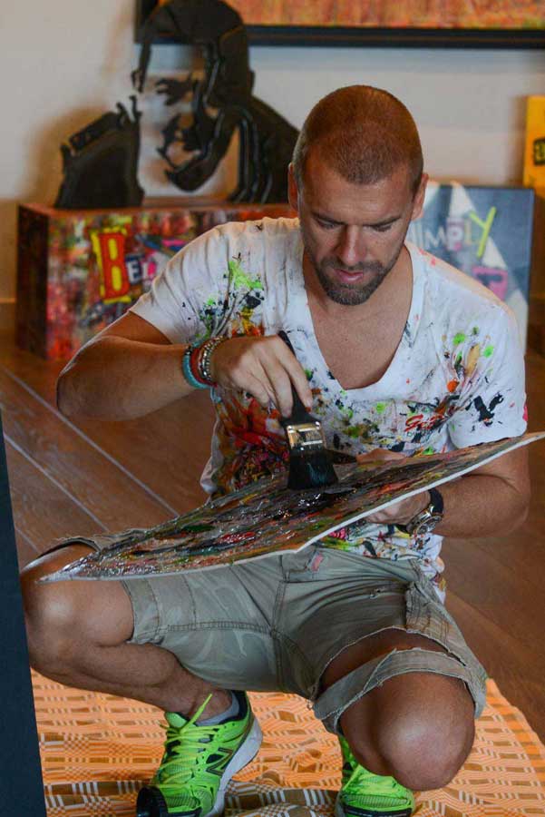 Professional in the sports environment during a dozen years, he juggled with his 2 careers for a while before tidying up definitively his sneakers to dedicate itself to his artistic career at the beginning of the summer, 2009.Shortly before it, in 2008, the artist will become permanent artist of the Negresco in Nice. To date, 2 of his artworks are referenced within prestigious Madam Jeanne AUGIER’s foundation, which became, at the beginning of 2009, his artistic godmother.